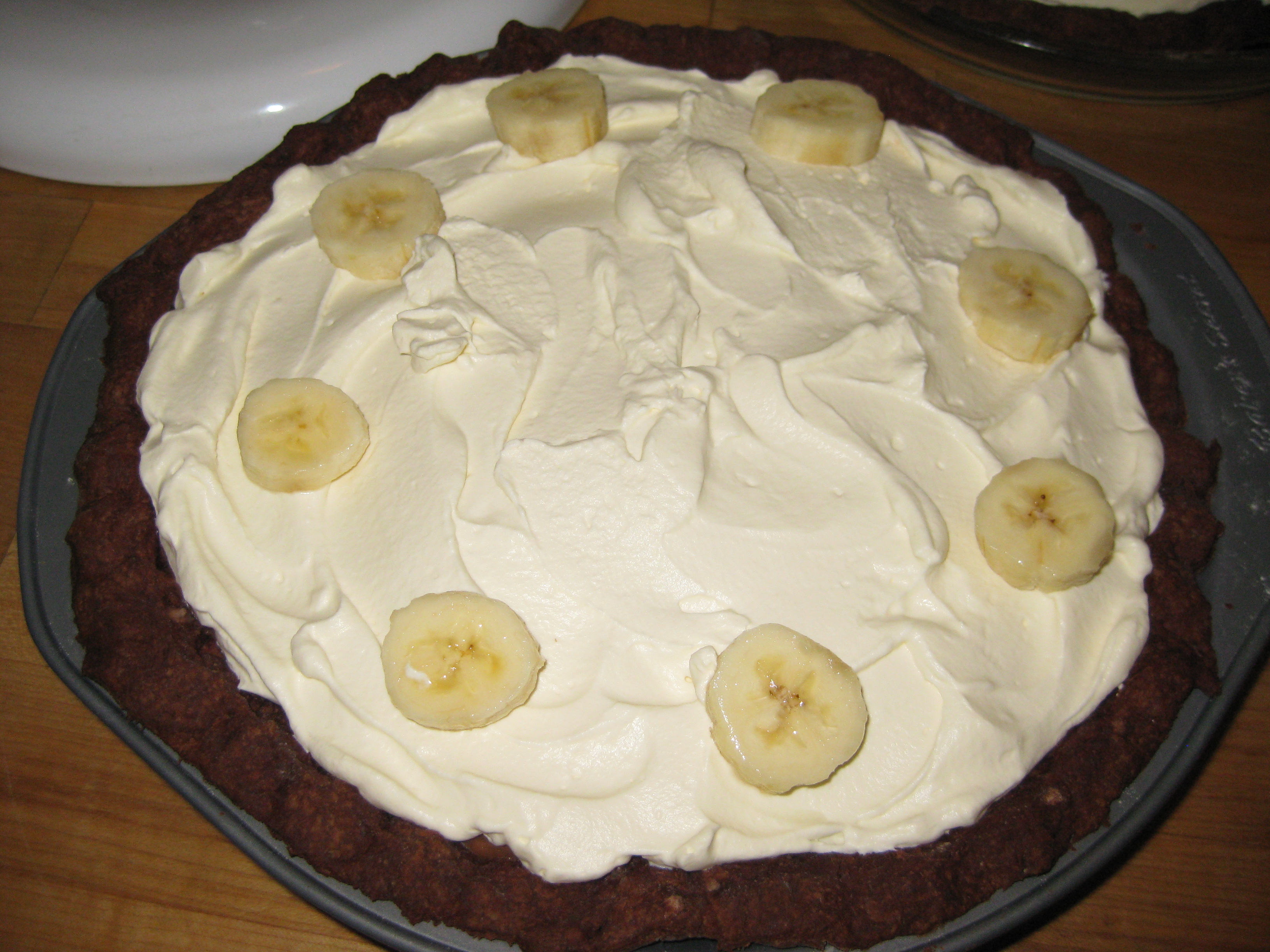 Yes, you read that correctly. Chocolate pie crust, layer of peanut butter pastry cream, then bananas, then a layer of chocolate pastry cream; chilled. Topped with fresh whipped cream, and decorated with sliced bananas. It was just as good as it sounds, and peanut butter pastry cream was T-R-I-C-K-Y, cause it started to seize up (note to self, thin out the peanut butter with something first).
