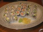 We certainly didn’t go hungry that night, because to top it all off I made mini lemon meringue pies-we decided they could be called either 3 or 5 Bite Pies (depends on how big your bite is). I like the sound of Five Bite Pies, but that’s just me. Maybe we’ll never make sushi for ourselves again and maybe we’ve started a new tradition, either way it was a fantastic day, and now we’ve got a much better idea as to what the heck is involved. And now, here are the many pictures of the many items we put together.